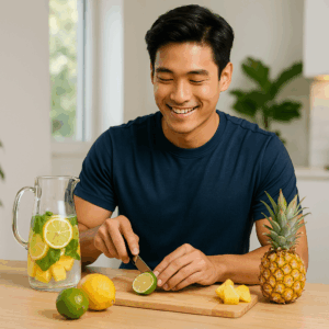 แล้วถ้าคุณเบื่อน้ำเปล่าแต่อยากได้ความสดชื่นจากผลไม้ล่ะ? คำตอบคือ “Infused Water” หรือ “น้ำหมักผลไม้” นี่คือวิธีที่ชาญฉลาดที่สุดในการรับ “รสชาติ” และ “วิตามินบางส่วน” จากผลไม้ โดยไม่ต้องรับ “น้ำตาล” เข้ามาทำร้ายร่างกาย