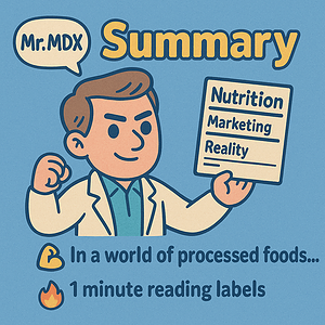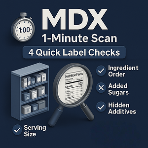 📦ในขณะที่ “ความจริง” ทั้งหมดซ่อนอยู่ในตัวหนังสือเล็กๆ ด้านหลัง ที่คนส่วนใหญ่ไม่เคยอ่านเลย วันนี้ผมจะให้คุณ “อาวุธลับ” ที่ใช้เวลาเพียง 1 นาทีเท่านั้น เพื่อเปลี่ยนจาก “เหยื่อการตลาด” ให้กลายเป็น “นักสืบสุขภาพ” สูตรนี้เรียกว่า MDX 1-Minute Scan — ระบบสแกนฉลากอาหาร 4 จุดตาย 🔍