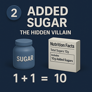 2️⃣ ดู Added Sugar ถ้าเกิน 10 กรัม ให้วางลง