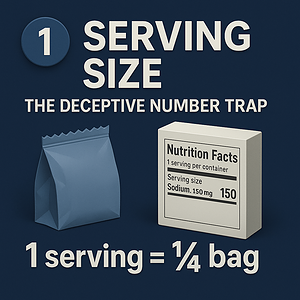 1️⃣ พลิกกล่องดู Serving Size ก่อน — คูณให้ครบเท่าที่คุณกินจริง