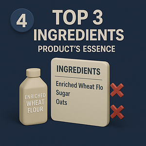 4️⃣ ดูส่วนผสม 3 ตัวแรก ถ้ามีแป้งขัดขาว น้ำตาล หรือไซรัป ข้ามไปเลย