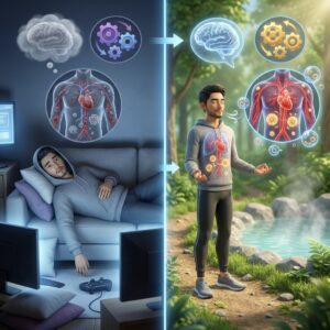 The Science: เมื่อคุณเดินในป่าสนหรือป่าดิบชื้น คุณจะได้รับสาร “Phytoncides” (ไฟตอนไซด์) ที่ต้นไม้ปล่อยออกมา งานวิจัยพบว่าการสูดดมสารนี้เพียง 2 ชั่วโมง สามารถเพิ่มระดับ NK Cells (Natural Killer Cells) หรือเซลล์เพชฌฆาตในร่างกายได้ถึง 40% ซึ่งทำหน้าที่จัดการกับไวรัสและเซลล์มะเร็ง