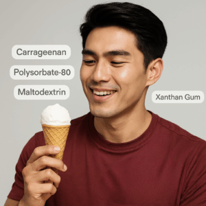 - ตัวอย่าง: คาราจีแนน (Carrageenan), โพลีซอร์เบต-80 (Polysorbate-80), มอลโทเดกซ์ทริน (Maltodextrin), กัมต่างๆ เช่น แซนแทนกัม (Xanthan Gum)