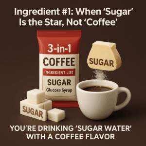 คุณไม่ได้กำลังดื่ม “กาแฟ, ครีม, และน้ำตาล” แต่คุณกำลังบริโภค “กาแฟคุณภาพต่ำ”, “ไขมันทรานส์อัดแข็ง”, และ “น้ำเชื่อมข้าวโพดชนิดผง” นี่คือค็อกเทลเคมีที่สมบูรณ์แบบสำหรับการทำลายสุขภาพของคุณตั้งแต่จิบแรก