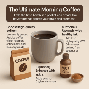 ถึงเวลาแล้วที่จะโยนระเบิดเวลาในซองทิ้งไป แล้วหันมาสร้าง “สุดยอดกาแฟยามเช้า” ที่ไม่เพียงแต่ให้คาเฟอีน แต่ยังช่วย “บูสต์สมอง” และ “เผาผลาญไขมัน” ของคุณด้วย