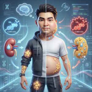 - ย้ายไขมันมาแปะที่หน้า: อันนี้เจ็บปวดสุดครับ คอร์ติซอลจะสั่งให้สลายไขมันที่แขนขา (แขนขาลีบ) แต่เอาไปพอกไว้ที่ “แก้ม ใต้คาง และพุง” แทน หน้าเราเลยกลายเป็นพระจันทร์วันเพ็ญ (Moon Face) ทั้งที่ไม่ได้อ้วนขึ้นเลย!