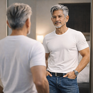 * หนวดเครา: ไว้หนวดได้ แต่ต้องกันขอบให้คมกริบ (Sharp) และบำรุงด้วยน้ำมันใส่หนวดให้เงางาม หนวดเคราสีเงินคือสัญลักษณ์ของ Alpha Male ในวัยนี้ครับ