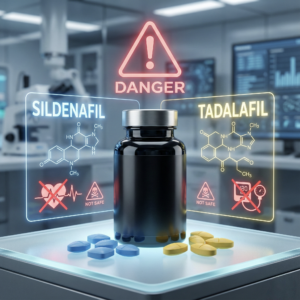 ระวังผลิตภัณฑ์ที่ลักลอบผสมยาผู้ชาย: มีกรณีตัวอย่างที่พบข่าวว่า ผลิตภัณฑ์เสริมอาหารสำหรับผู้ชายบางยี่ห้อแอบผสมยาเพิ่มสมรรถภาพทางเพศลงไปโดยไม่แจ้งบนฉลาก เช่น ซิลเดนาฟิล หรือ ทาดาลาฟิล ซึ่งเป็นตัวยาในไวอากร้าและยารักษาหย่อนสมรรถภาพเพศชาย การผสมยาเหล่านี้อาจทำให้ผู้ใช้เห็นผลไวจริงในแง่การแข็งตัวหรือความอึด แต่ก็เสี่ยงอันตรายมากเพราะตัวยาอาจมีผลข้างเคียงต่อหัวใจ ความดันโลหิต และระบบอื่นๆ โดยเฉพาะถ้าผู้ใช้มีโรคประจำตัวหรือทานยาชนิดอื่นอยู่ การได้รับยาพวกนี้โดยไม่อยู่ในความดูแลของแพทย์อาจเกิดผลข้างเคียงร้ายแรงถึงชีวิตได้