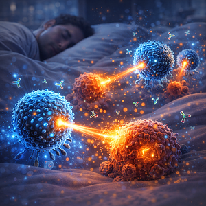 การนอนหลับไม่ใช่แค่การพักผ่อน แต่มันคือช่วงเวลา “เข้าฌาน” ของระบบภูมิคุ้มกันครับ จินตนาการว่าในร่างกายเรามี “หน่วยรบพิเศษ” (NK Cells และ T-Cells) ที่มีหน้าที่ไล่ล่าไวรัสและเซลล์มะเร็ง ทหารเหล่านี้จะเก่งกาจที่สุดก็ต่อเมื่อคุณ “หลับลึก” เพื่อกลับฐานมา reload กระสุน และอัปเกรดอาวุธใหม่ เตรียมพร้อมลุยในวันรุ่งขึ้น