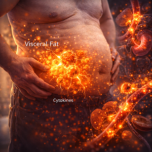 • The Danger: ไขมันช่องท้อง (Visceral Fat) ผลิตสารไซโตไคน์ (Cytokines) ที่ก่อการอักเสบ ส่งไปทำลายหลอดเลือดและอวัยวะต่างๆ ทั่วร่างกาย