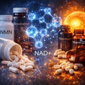 NAD+ Optimization: โมเลกุล NAD+ คือถ่านไฟฉายของเซลล์ที่ลดลงตามวัย ปัจจุบันมีงานวิจัยเกี่ยวกับสารตั้งต้น เช่น NMN หรือ Resveratrol ที่อาจช่วยสนับสนุนระดับพลังงานในระดับเซลล์ (ควรศึกษาและปรึกษาผู้เชี่ยวชาญ)