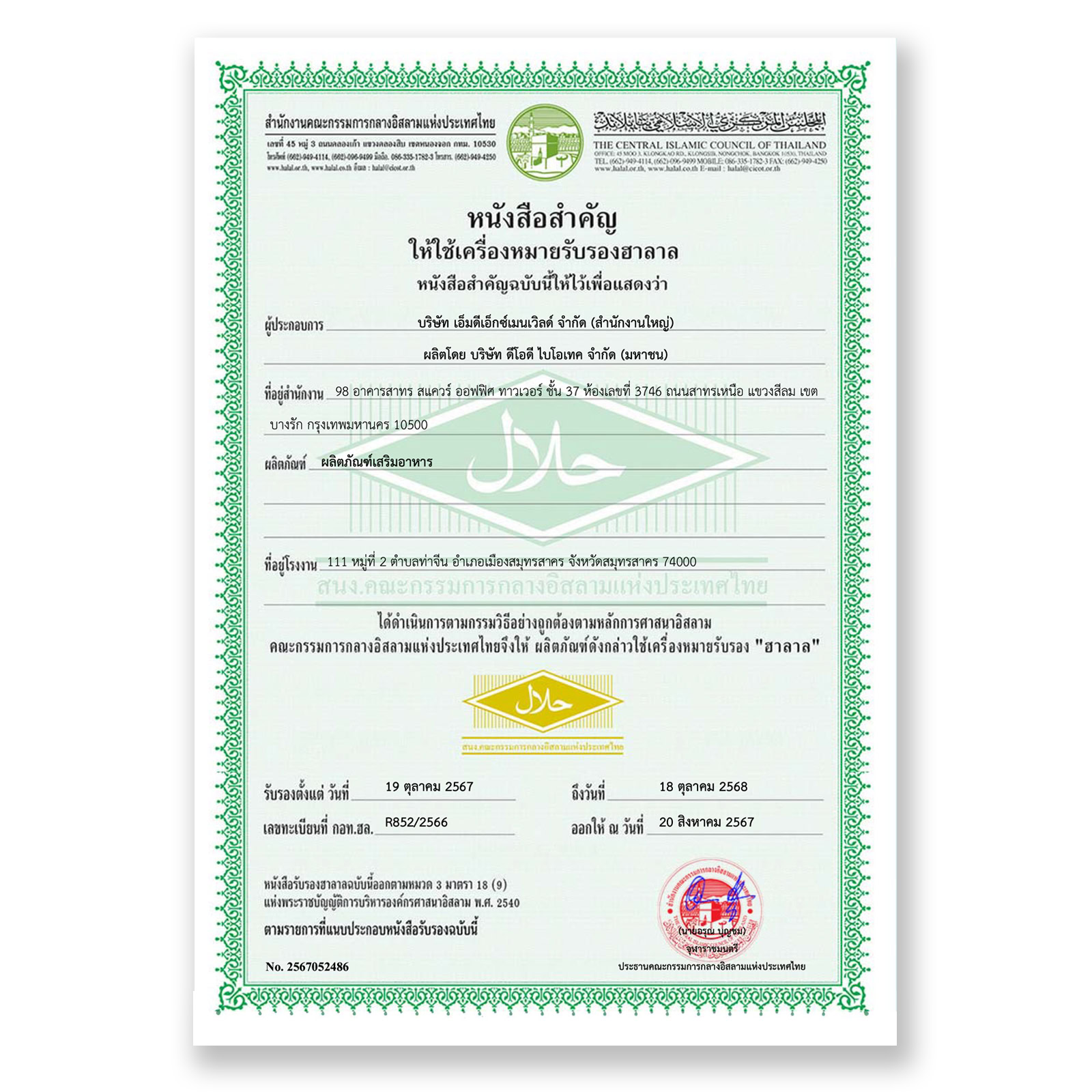 ปลอดภัย ⦿ อย. 74-1-07455-5-1041 ฮาลาล GMP
