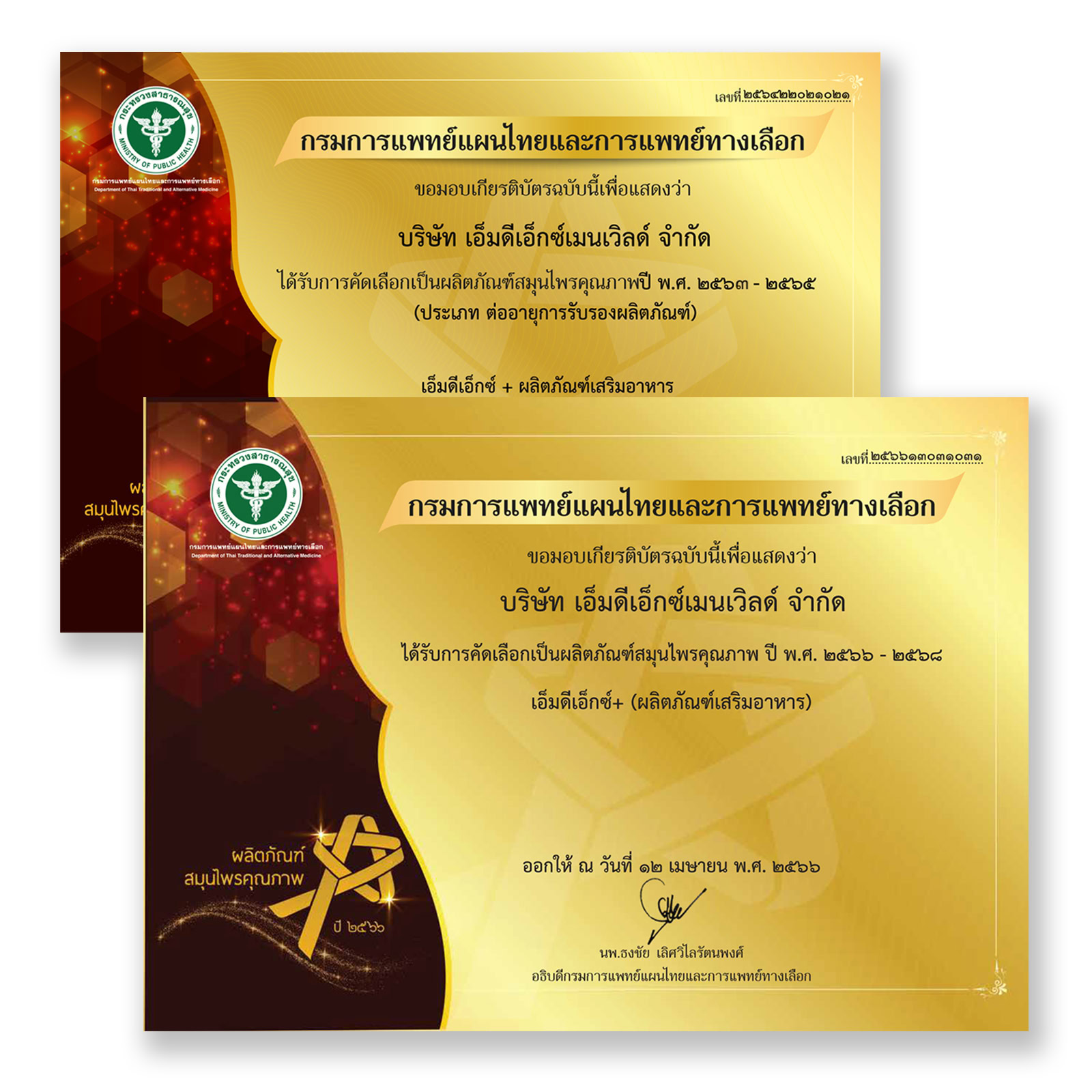 MDX+ แบรนด์แรก และ แบรนด์เดียว ที่ได้รับรางวัลชนะเลิศ กระทรวงสาธารณสุข 6 ปีซ้อน