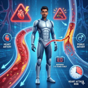 เมื่อร่างกายมีไขมันอุดตัน หรือหลอดเลือดเริ่มเสื่อมสภาพ (Atherosclerosis) “ท่อเล็ก” จะตันก่อน “ท่อใหญ่” เสมอ! งานวิจัยระบุว่า อาการไม่แข็งตัวตอนเช้า หรือ Erectile Dysfunction (ED) มักจะปรากฏขึ้นล่วงหน้าก่อนที่จะเกิด “ภาวะหัวใจวาย” (Heart Attack) หรือโรคหลอดเลือดสมอง ประมาณ 3-5 ปี ดังนั้น การสังเกต NPT จึงไม่ใช่เรื่องลามก แต่คือการเช็คมาตรวัดน้ำมันของสุขภาพหลอดเลือดทั่วร่างกาย
