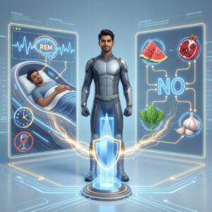 เน้นอาหารที่ช่วยเพิ่ม ไนตริกออกไซด์ (Nitric Oxide) เช่น แตงโม, ทับทิม, ผักโขม หรือกระเทียม เพื่อช่วยขยายหลอดเลือดขนาดเล็ก