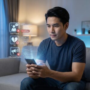 ลองไล่ดูรายชื่อเพื่อน หรือเพจที่คุณติดตาม แล้วถามตัวเองด้วยคำถามเดียว: “คอนเทนต์ของคนนี้ ทำให้ชีวิตกูดีขึ้น หรือทำให้กูรู้สึกแย่?”