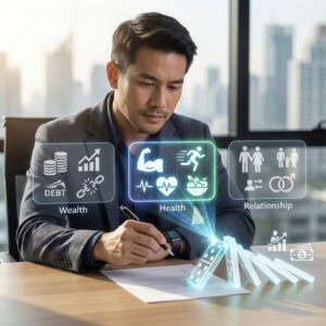 ตัวอย่าง: ถ้าคุณเลือก “สุขภาพ” เพราะปีที่ผ่านมาคุณป่วยบ่อยจนทำงานไม่ได้ ถ้าปีหน้าคุณแข็งแรง งานคุณก็จะดีขึ้น เงินก็จะตามมาเอง เห็นไหมครับว่าสุขภาพคือ “โดมิโนตัวแรก”