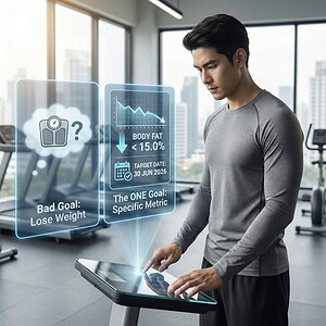 * The ONE Goal: “ฉันจะมีไขมันในร่างกาย (Body Fat) ต่ำกว่า 15% ภายในวันที่ 30 มิ.ย.” (มีตัวเลข มีเดดไลน์ชัดเจน)