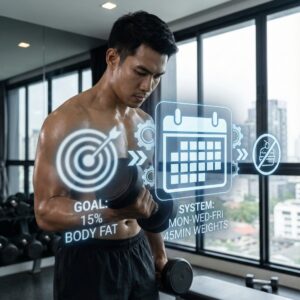 * ถ้าเป้าหมายคือ Body Fat 15% -> ระบบคือ “เวทเทรนนิ่ง 45 นาที ทุกวันจันทร์-พุธ-ศุกร์” และ “งดของหวานทุกมื้อเย็น”